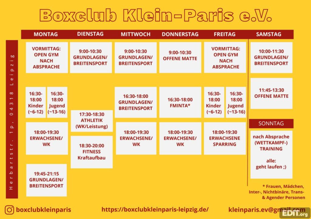 *Ausnahmen: U18, erfahrene Boxer*innen und Fitness.